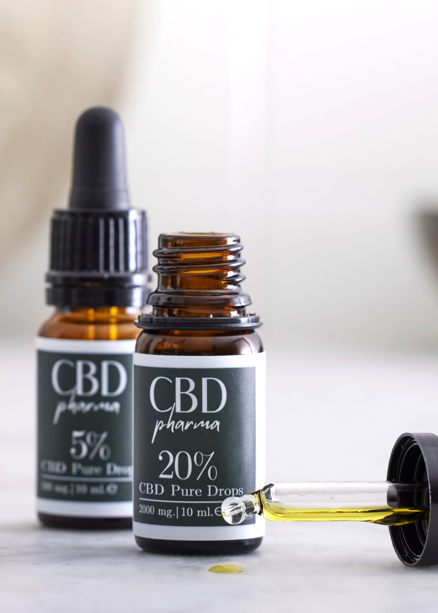 PURE CBD DROPS er 100% naturlige olier i forskellige styrker.